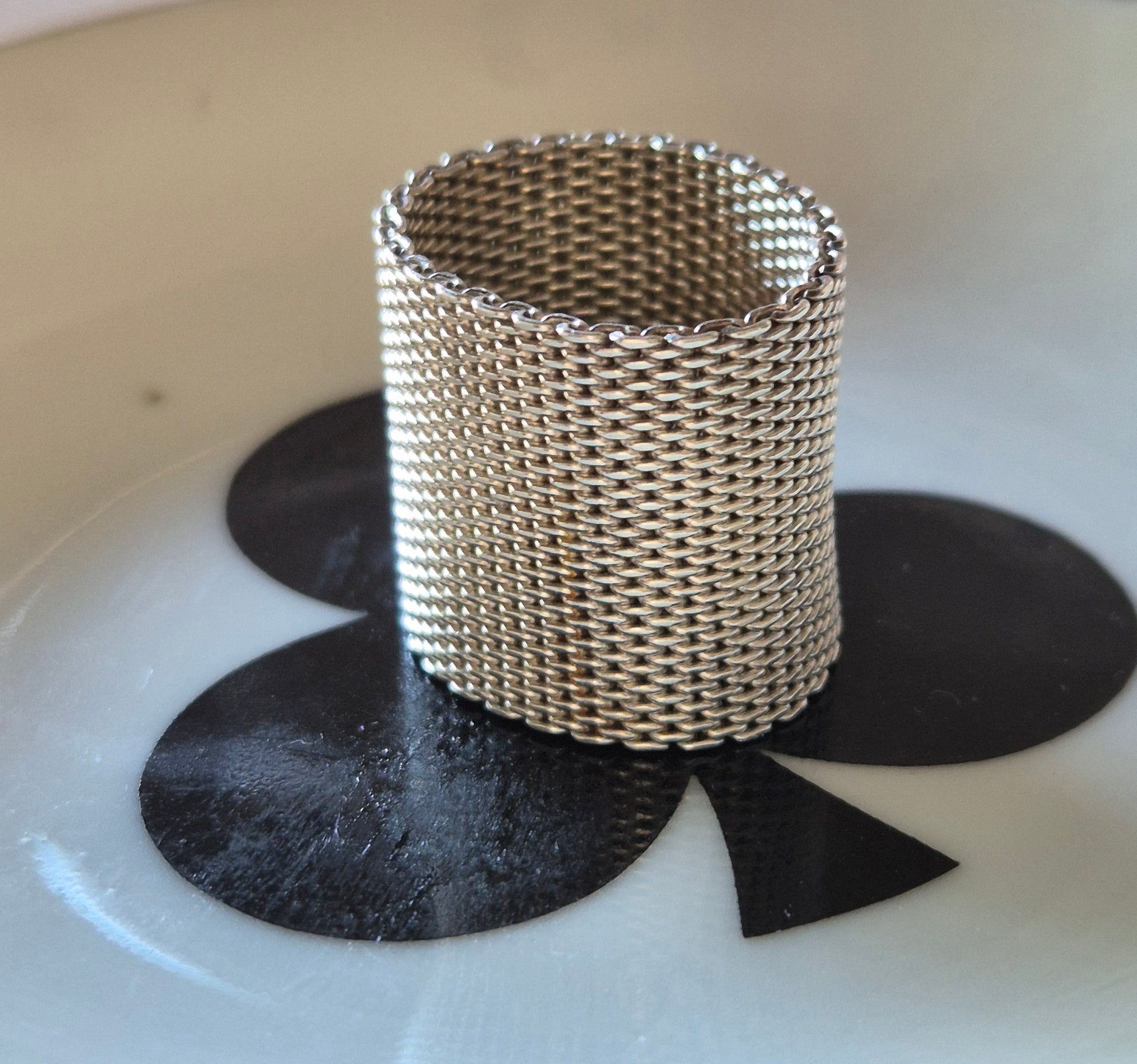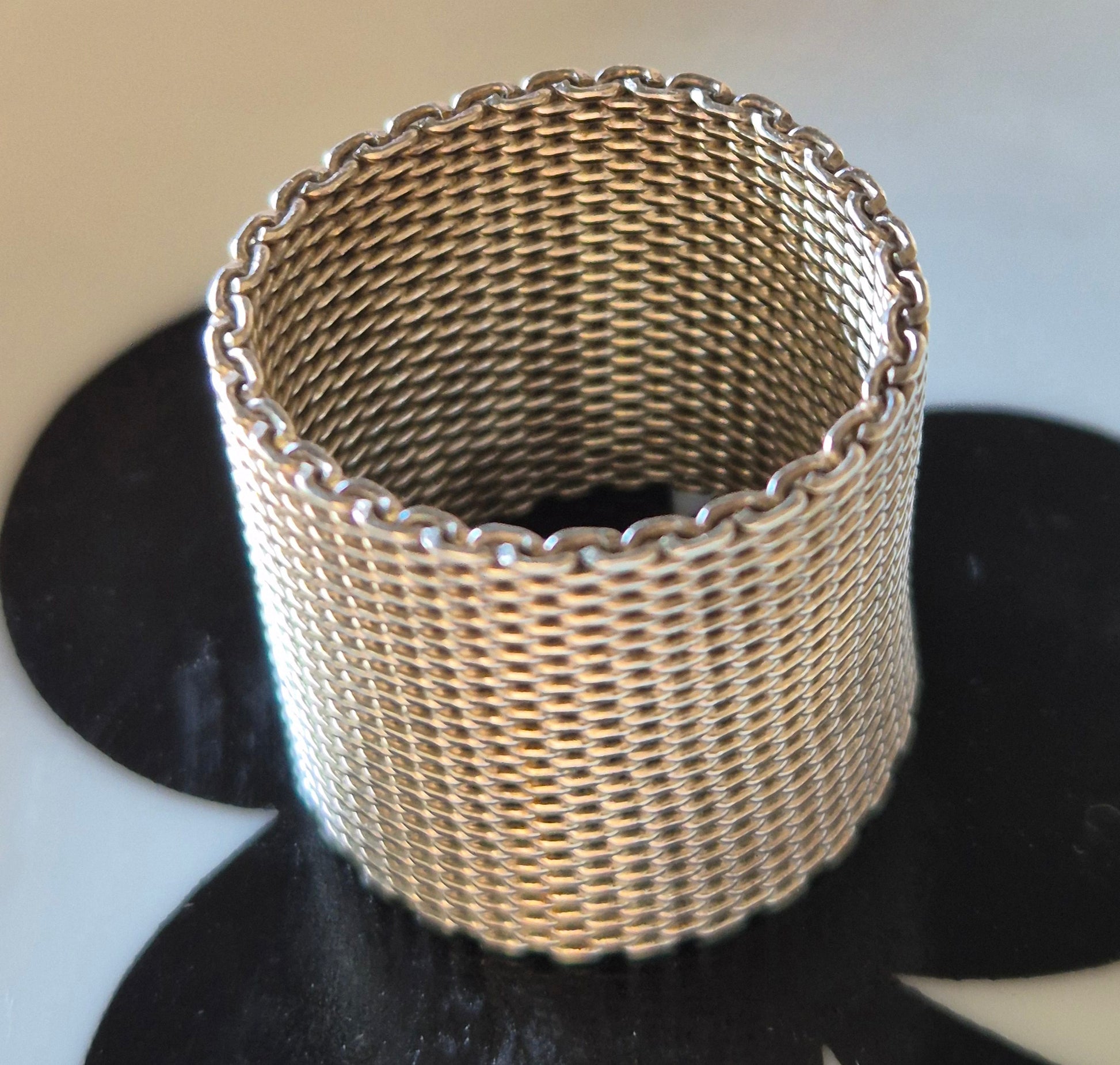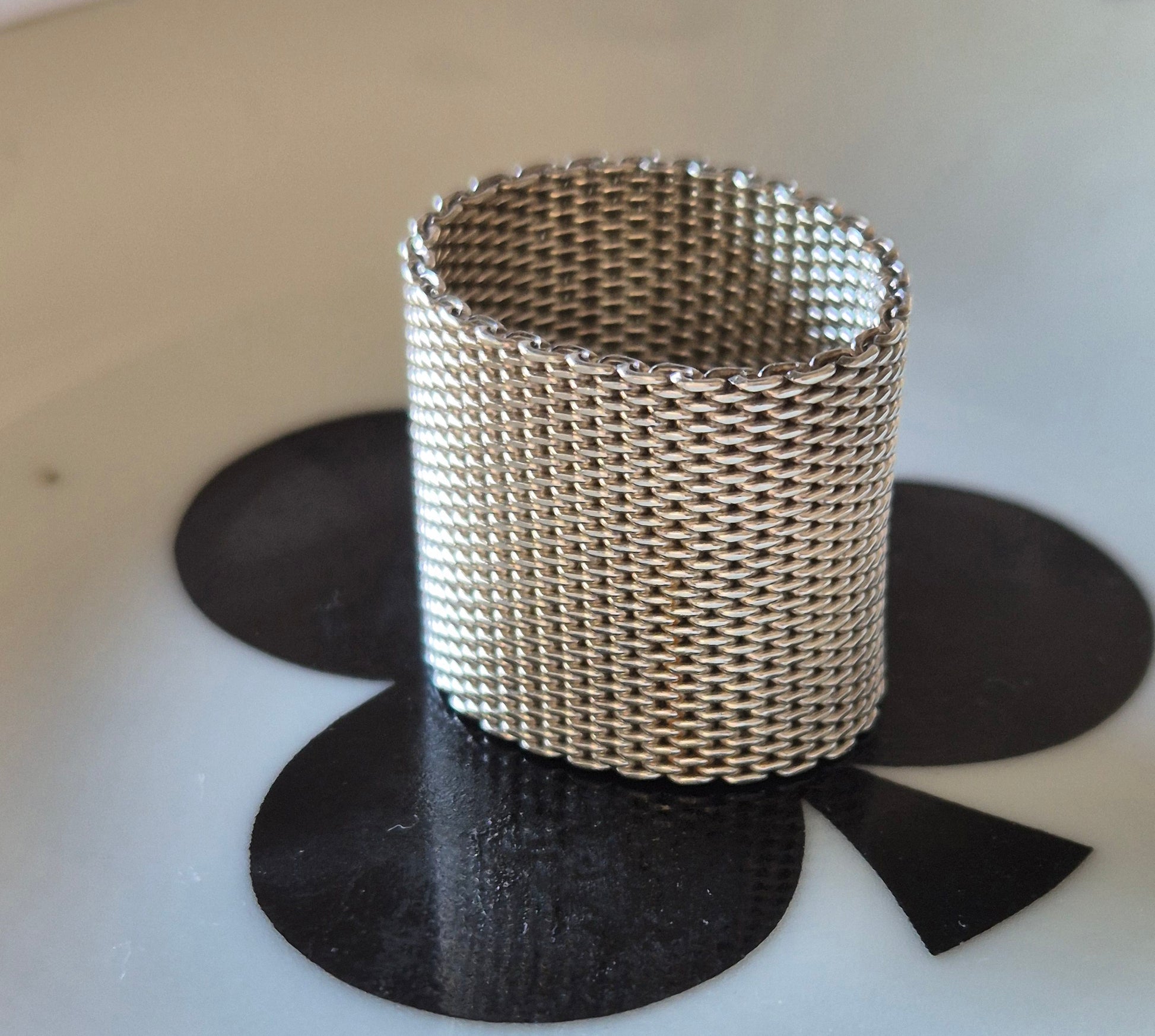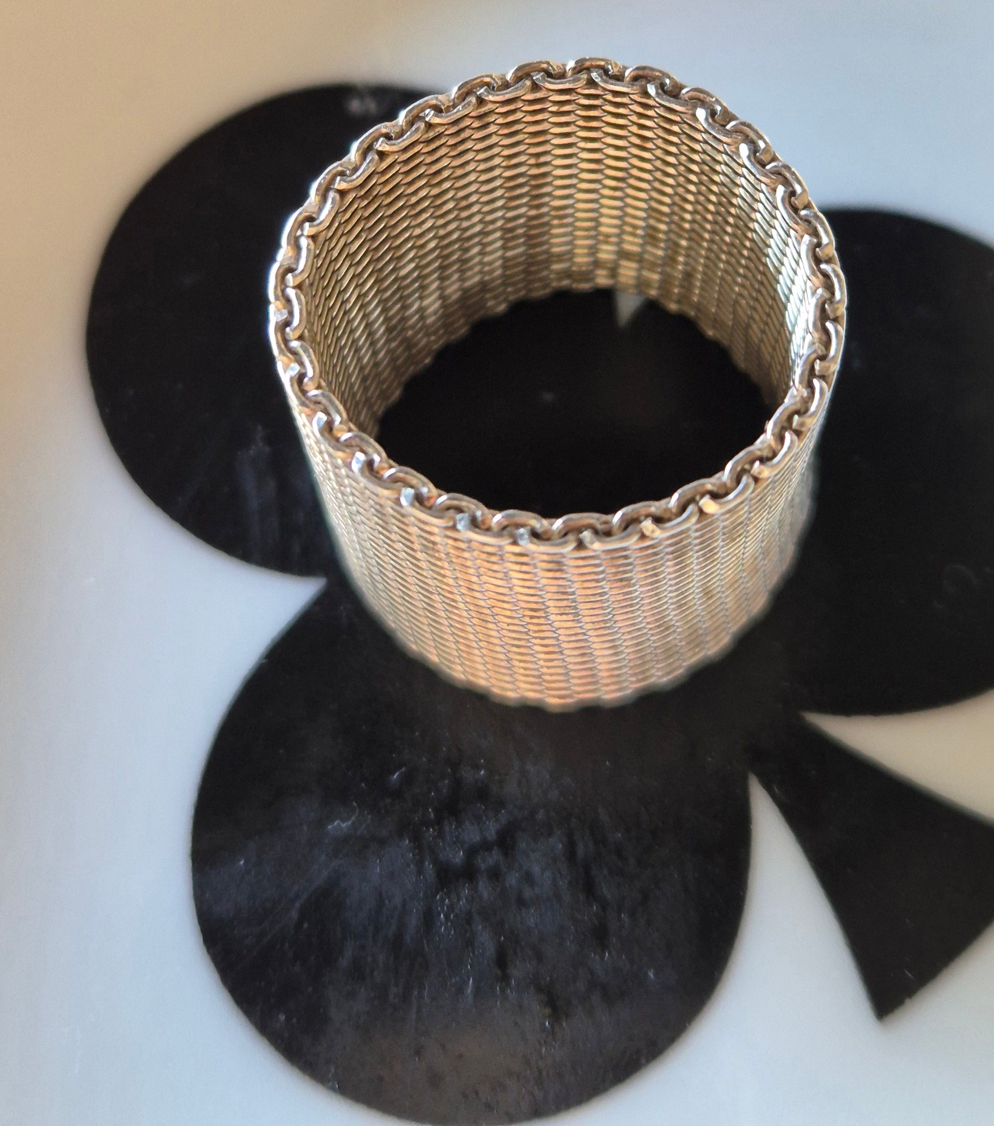 טבעת כסף (925) ארוגה רחבה וגמישה.