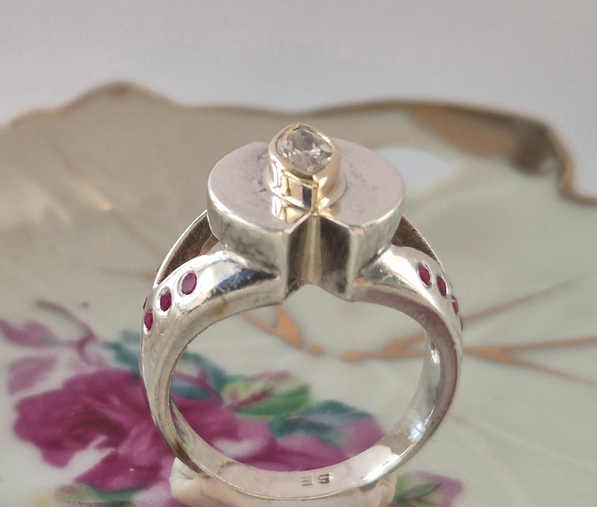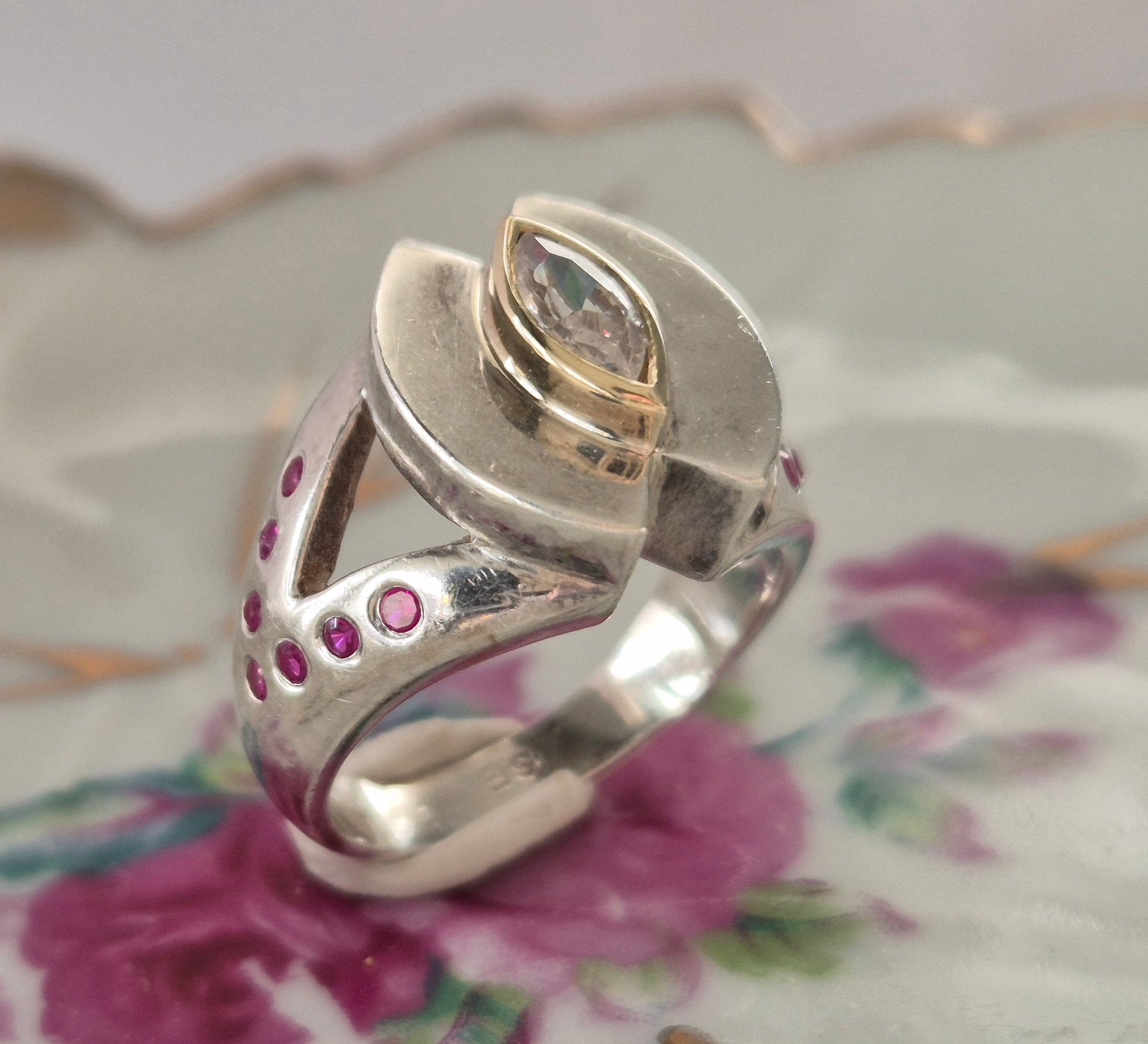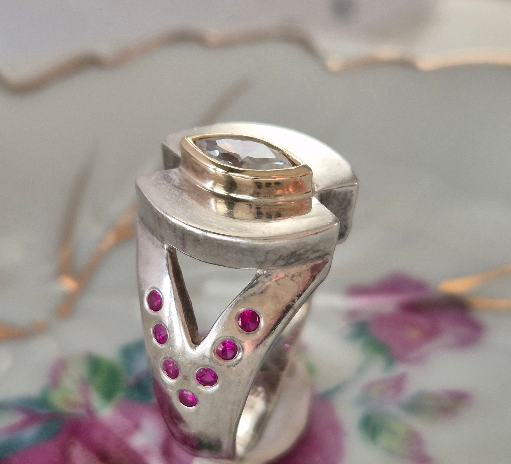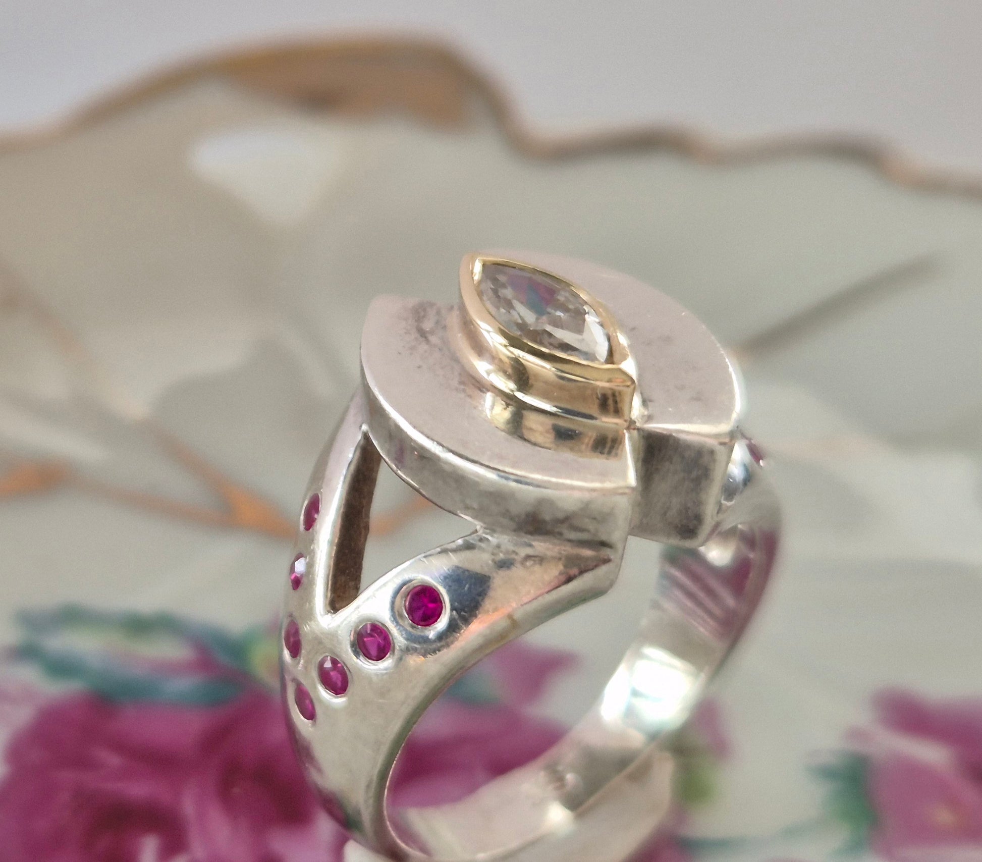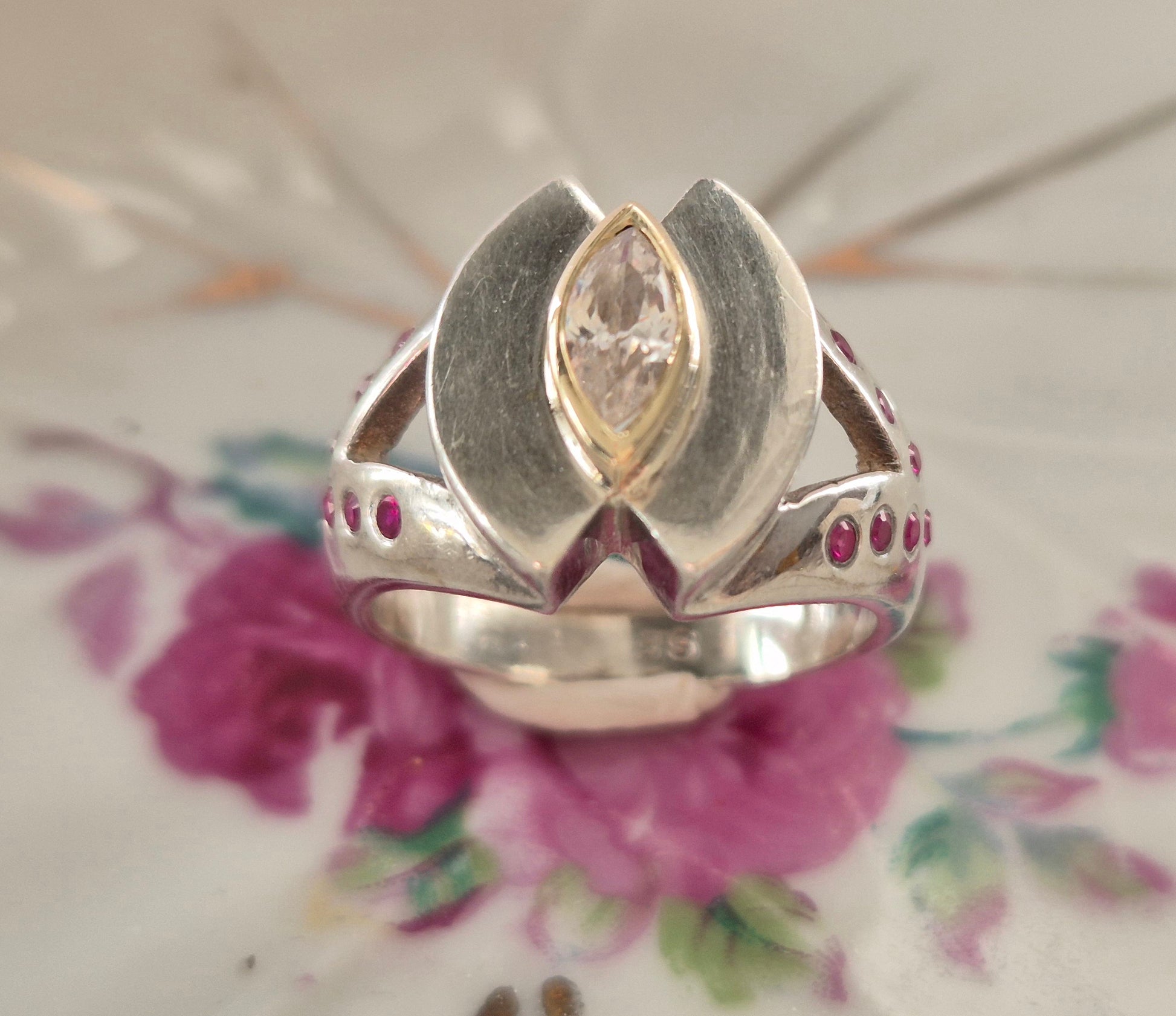טבעת כסף(925) עם בית אבן למרקיזה בזהב
