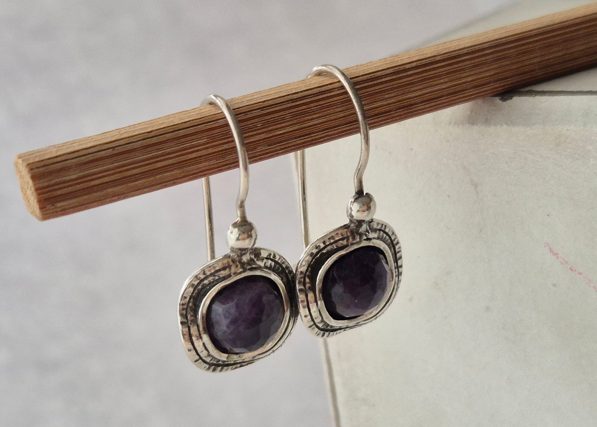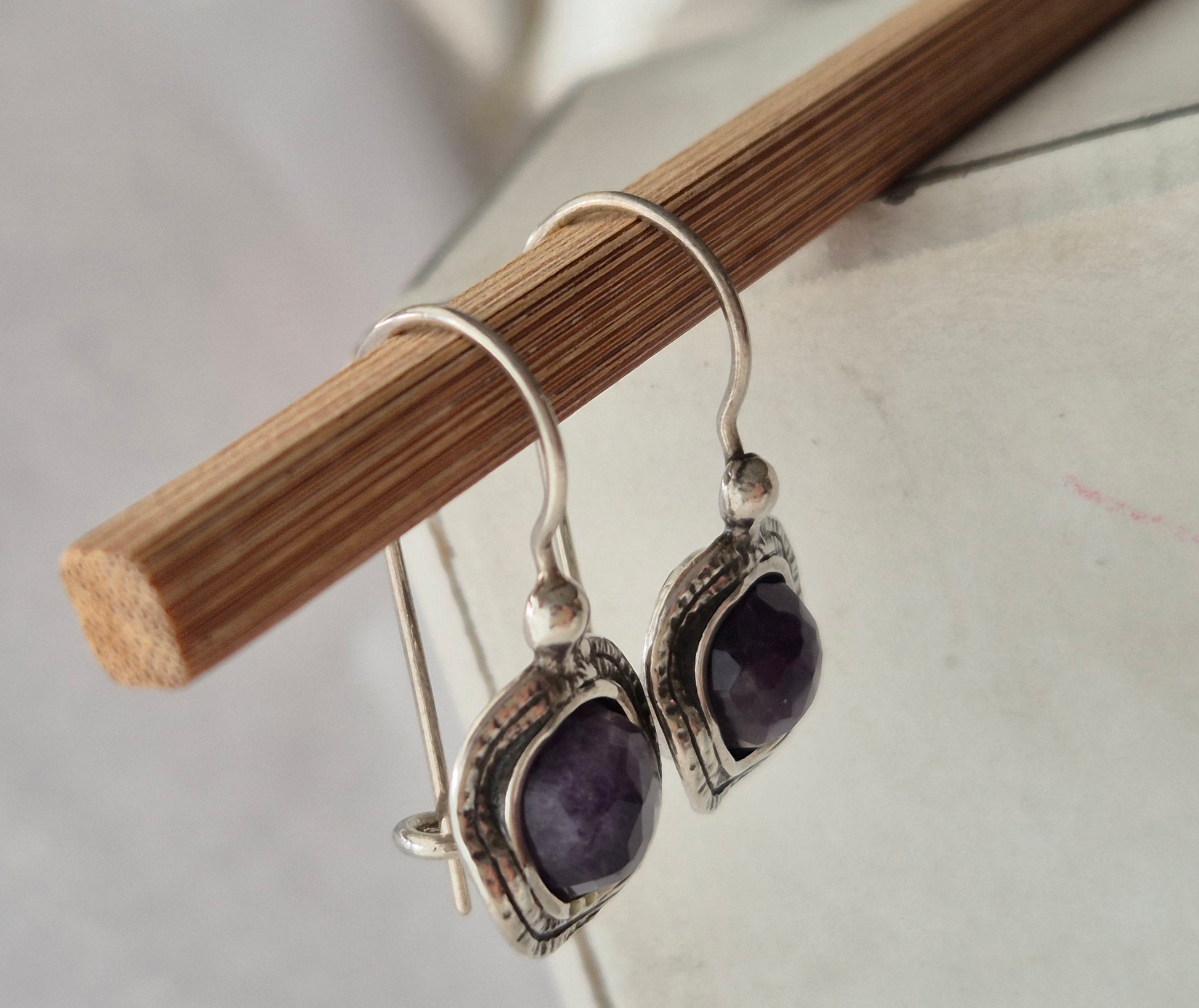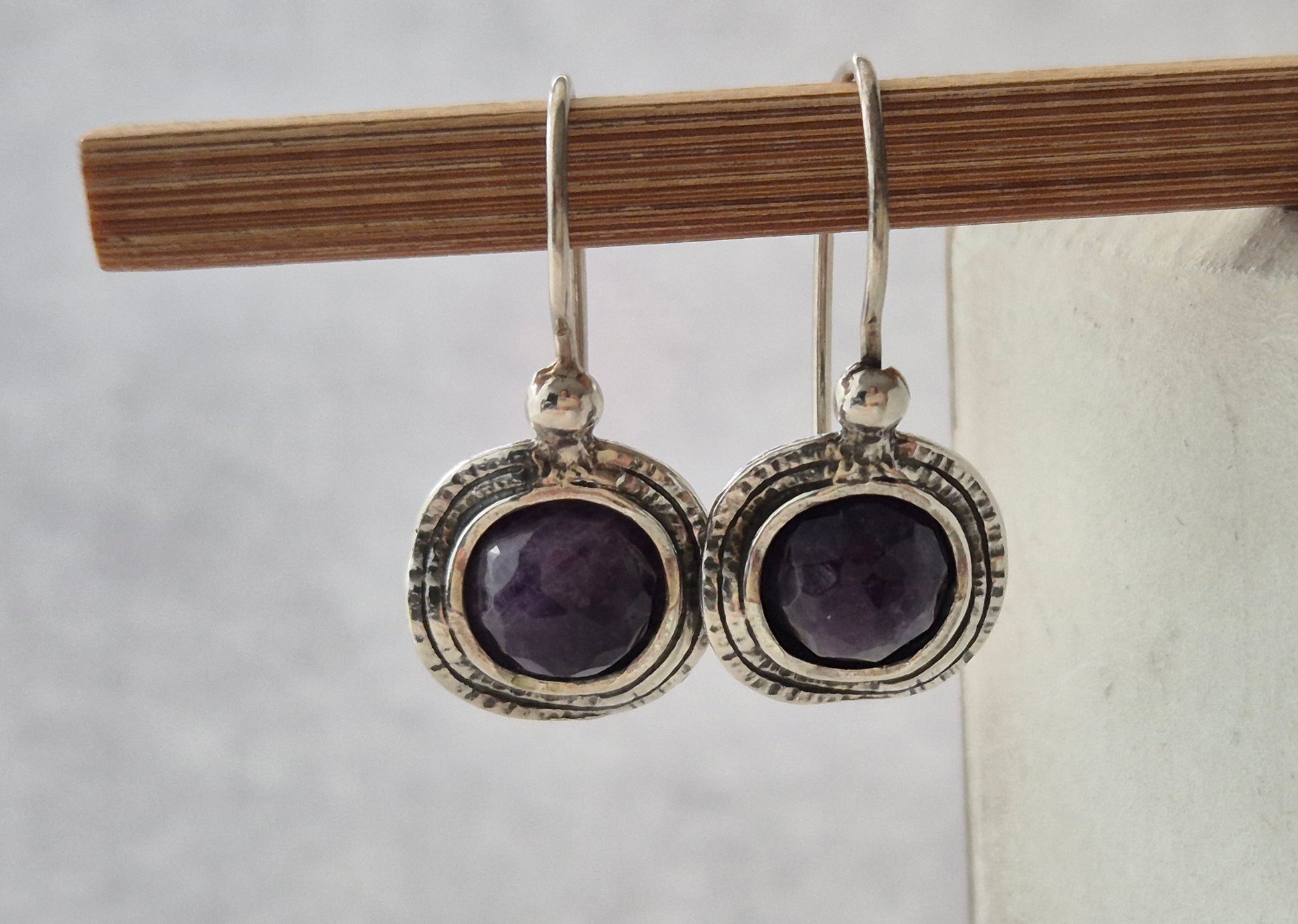 עגילי כסף (925) משובצים אבני אמטיסט סגולות יפיפיות.