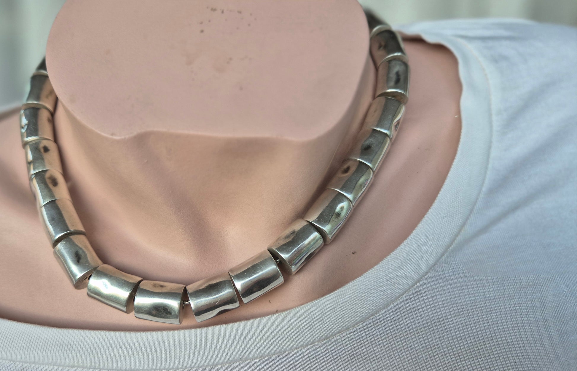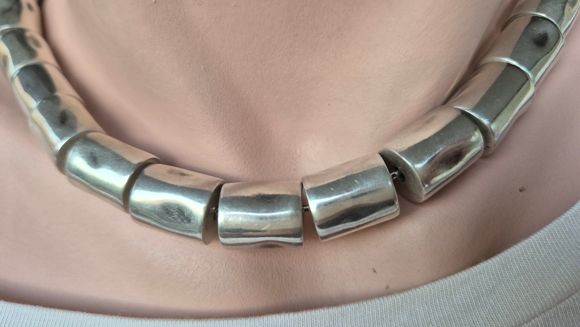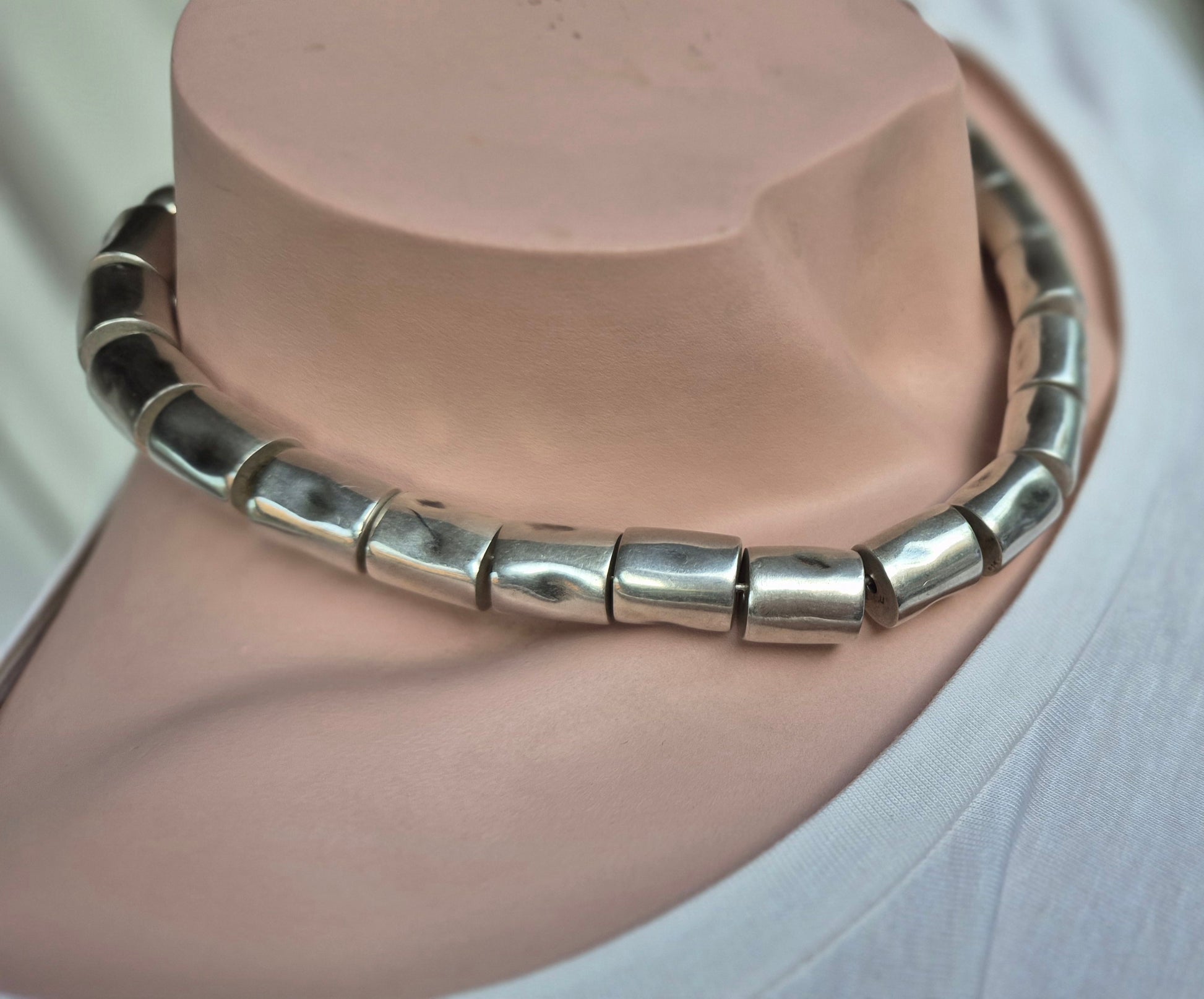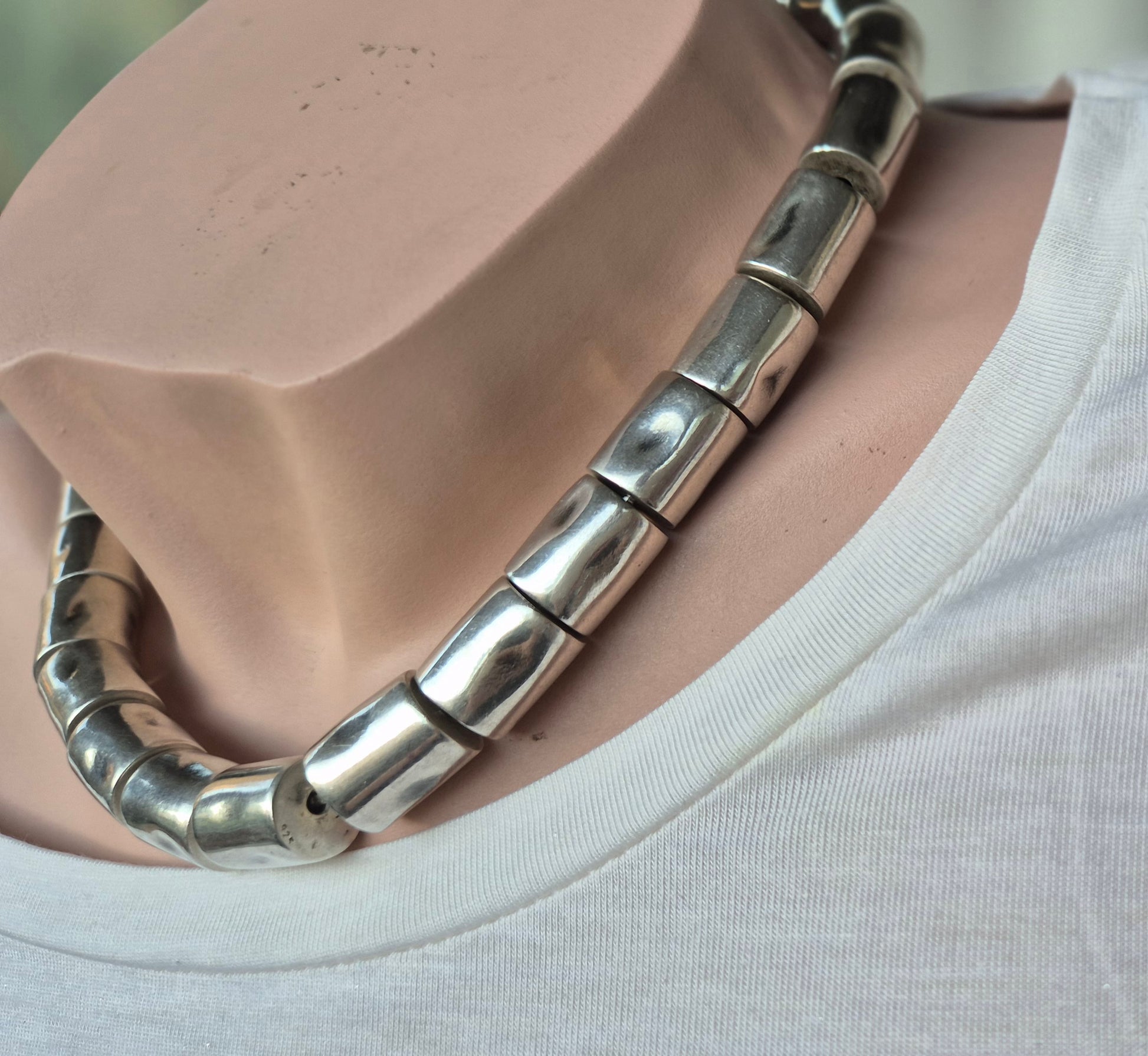שרשרת ענק עם חרוזי כסף (925) גליליים