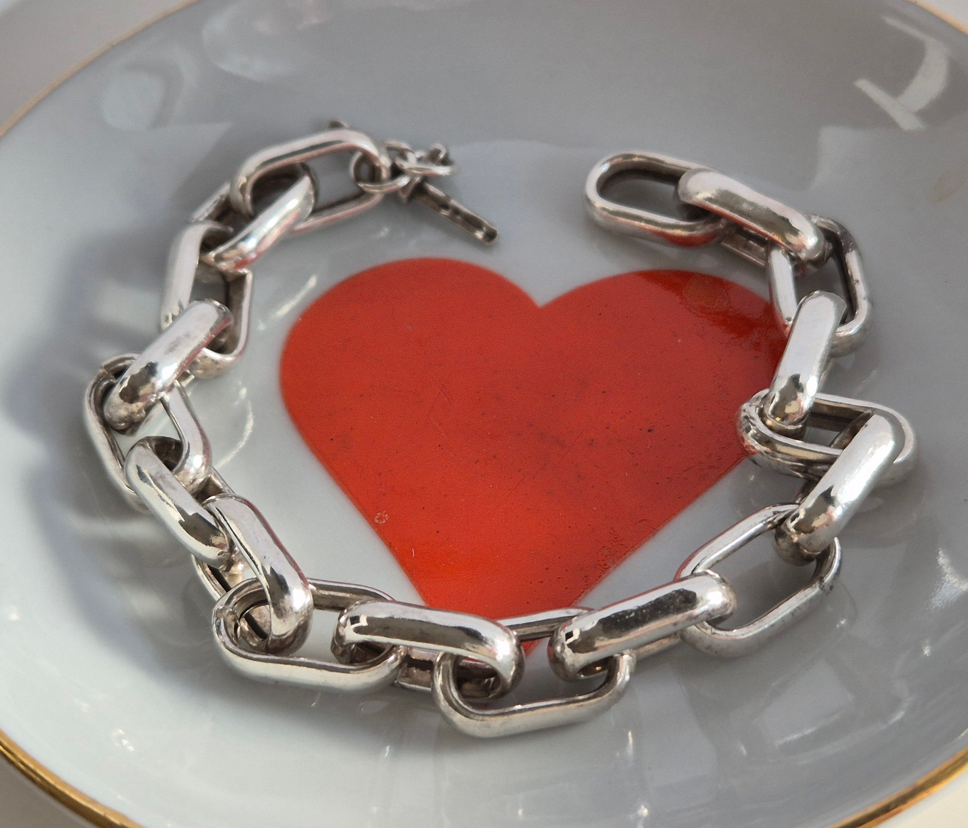 T צמיד חוליות אובליות מכסף (925) ומנעול