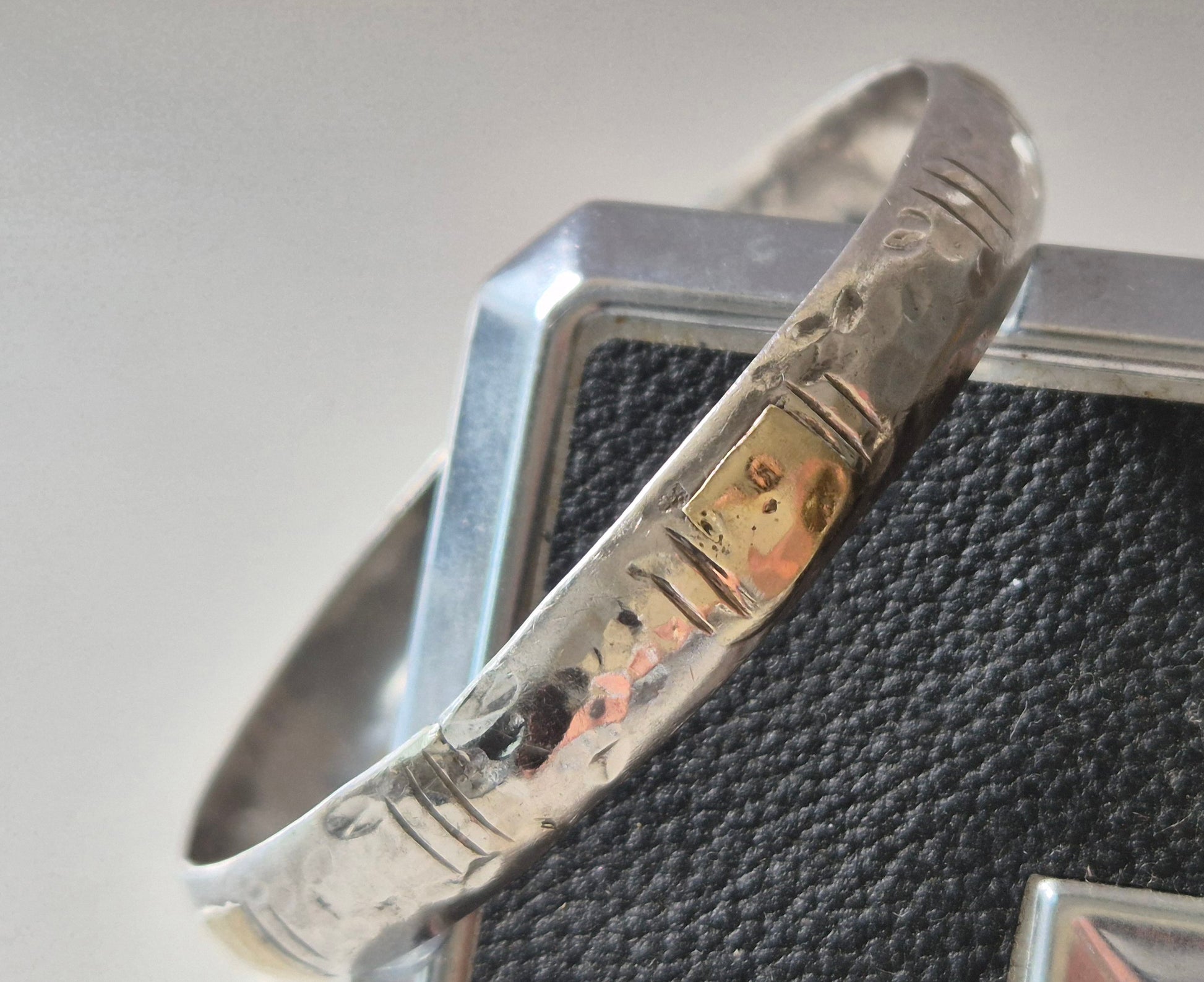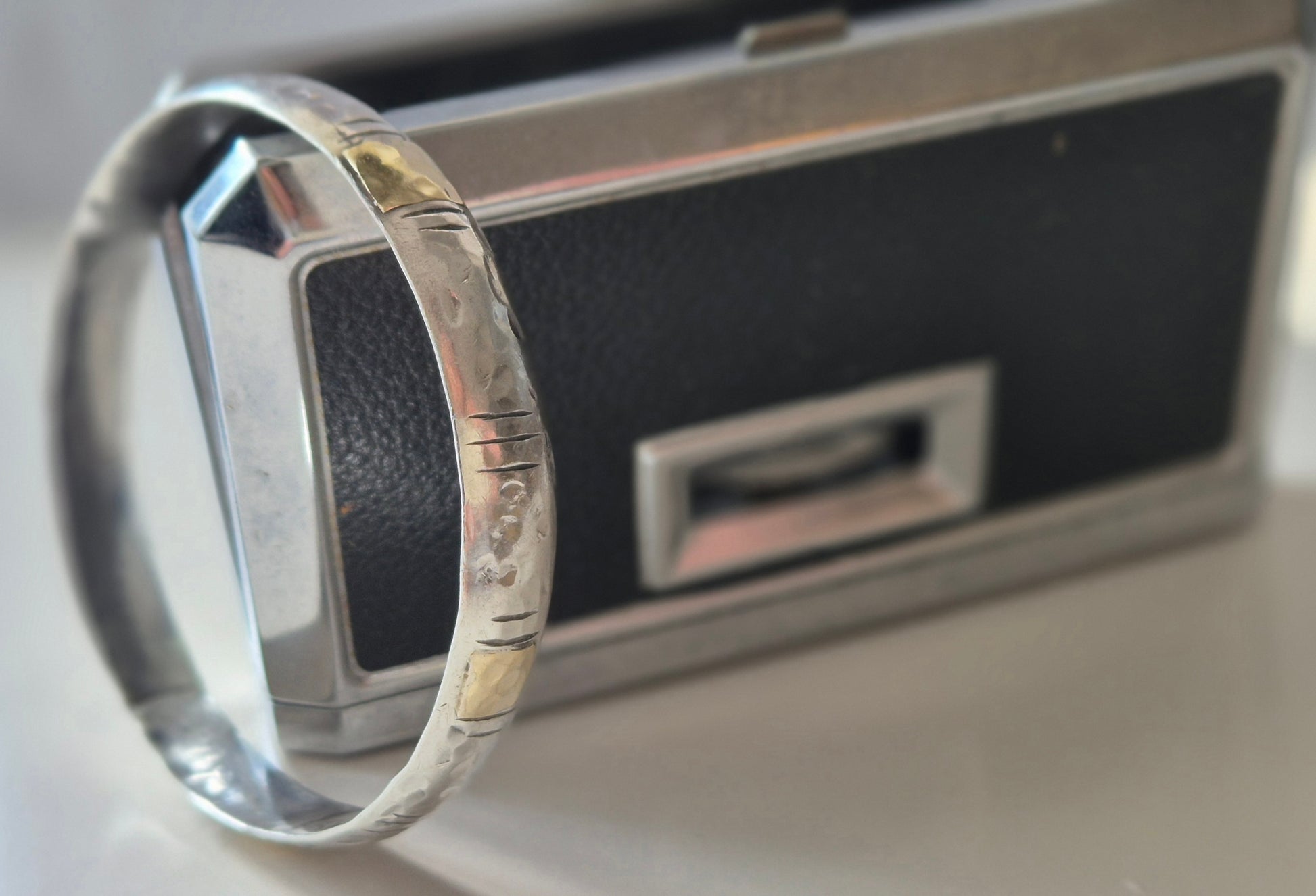 (14k) צמיד כסף(925) עם ריקועים וחלקי זהב מולחמים