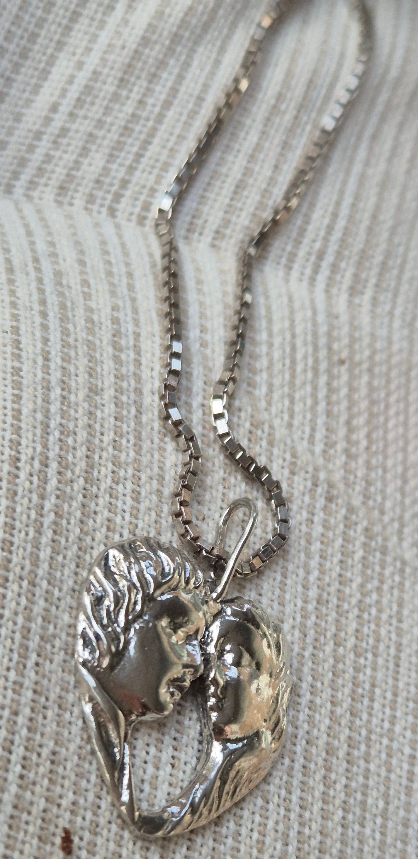 התליון בחריטה תלת ממדית של גבר ואישה היוצרים לב
