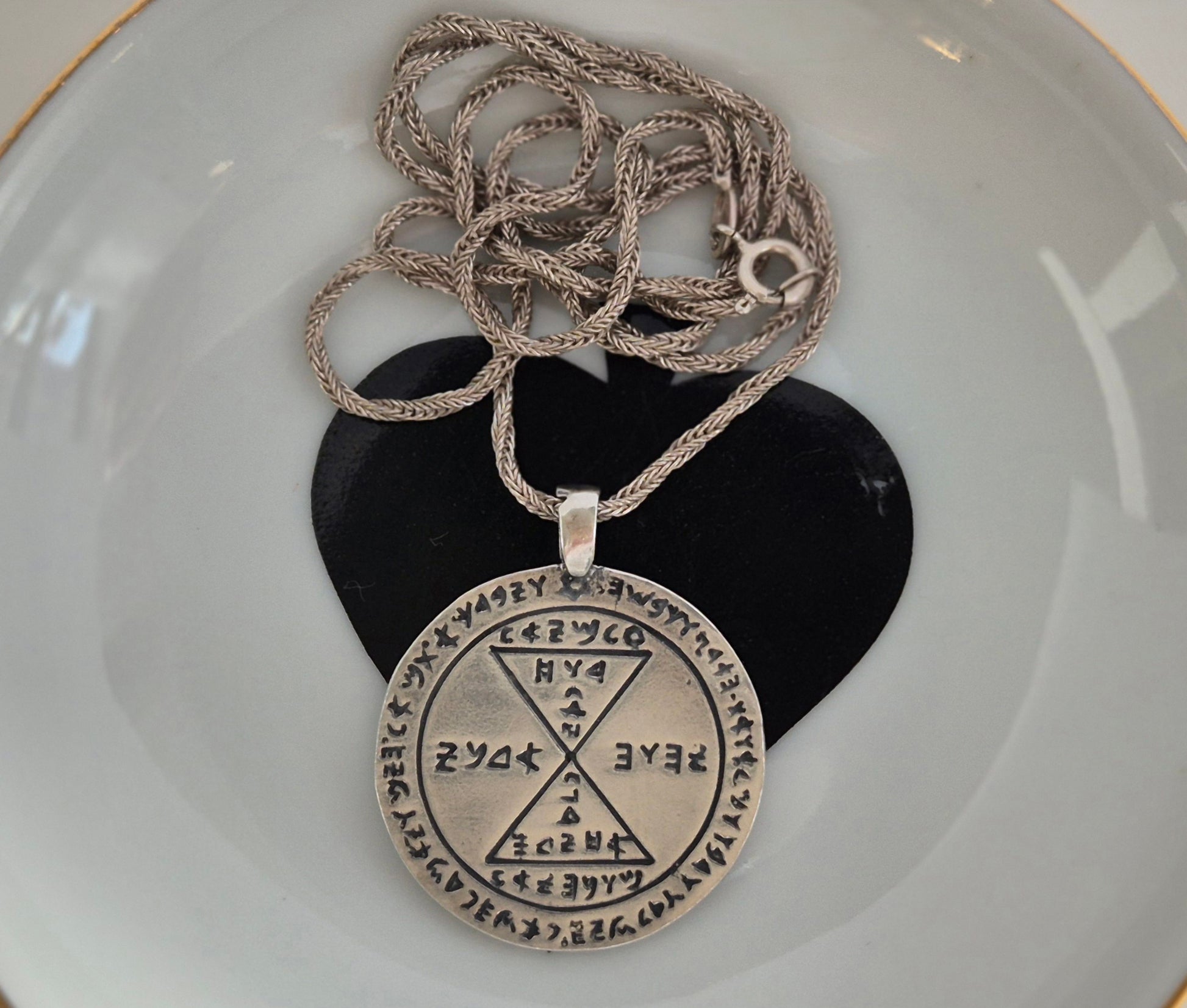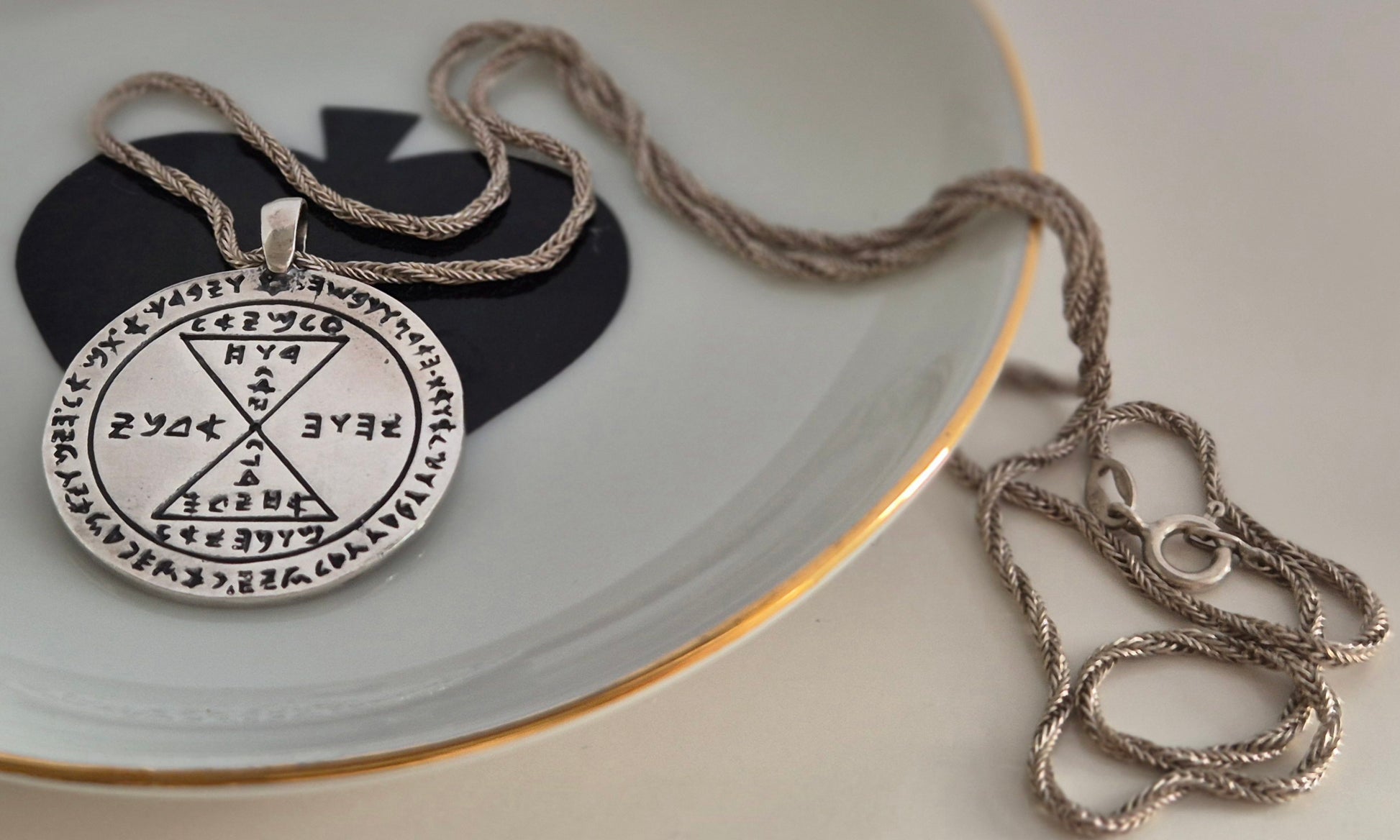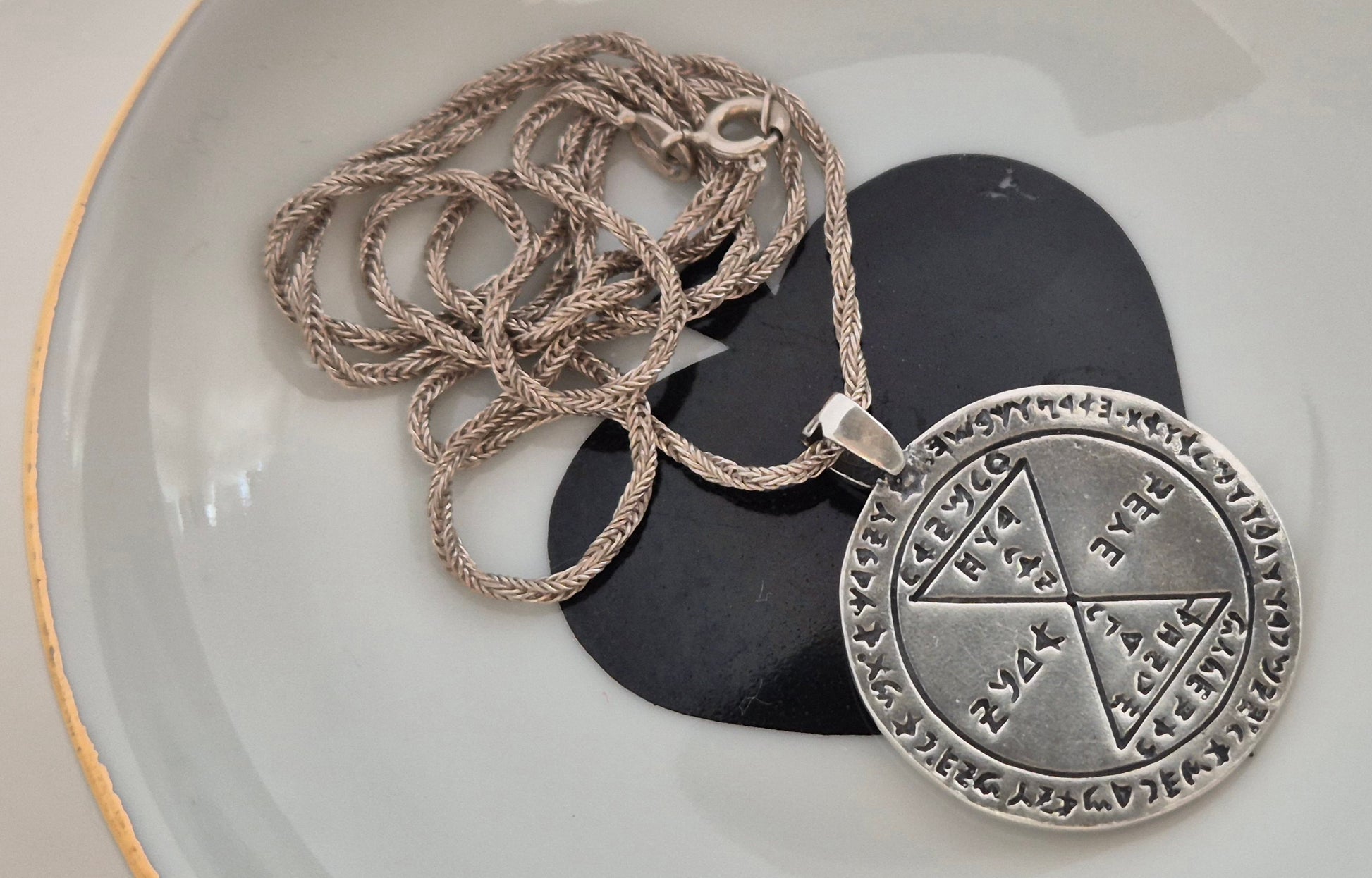 שרשרת עם תליון כסף (925) עליו חריטות בכתב עברי עתיק